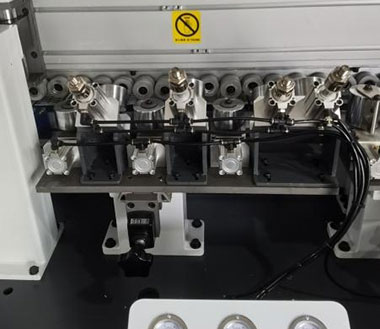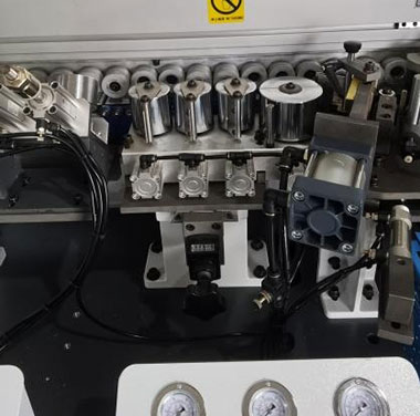 涂膠后經過壓貼輪使封邊帶緊貼板面,壓貼力量可調節(jié) |