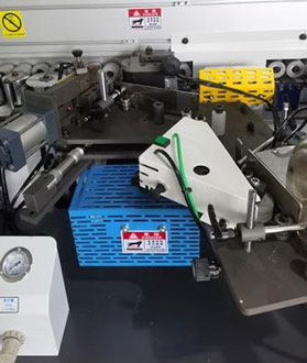 專為斜邊設計的膠鍋和斜涂膠軸,前裝烤板燈,在寒冷天氣預熱板材,使封邊帶和板材之間更好的粘合效果。 |