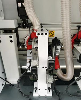 根據(jù)斜邊板材角度設計,上平刀下跟蹤刀,修至封邊帶緊貼板邊。氣缸進退,切換自如。 |