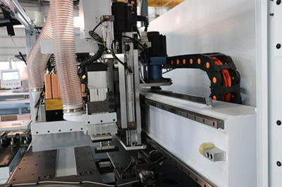 側(cè)靠裝置,根據(jù)板材寬度自動(dòng)調(diào)節(jié)側(cè)靠位置,避免工件高速運(yùn)動(dòng)時(shí)的工件側(cè)面的磨損,適應(yīng)不同寬度板材加工需要,達(dá)到最佳鉆孔效果。 |