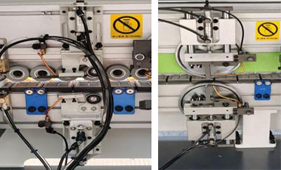 切斷板材兩頭的多余封邊帶(氣缸帶2個調(diào)壓閥1個泄壓閥)氣壓更穩(wěn)定,齊頭齊尾更穩(wěn)定 |