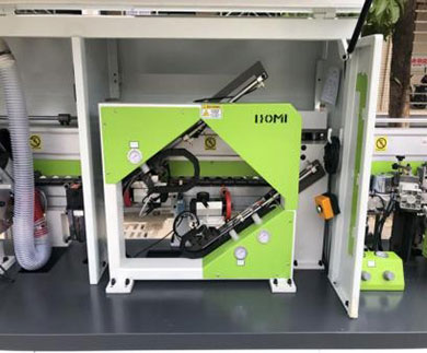 6輪壓貼貼合比4輪更精密,膠線輕微不跑帶,貼合牢靠,厚薄木皮均可輕松走帶,氣缸控制開關(guān)膠門,膠量穩(wěn)定,厚薄均勻。 |