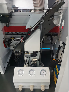 切斷板材兩頭的多余封邊帶(氣缸帶2個調(diào)壓閥1個泄壓閥)氣壓更穩(wěn)定,齊頭齊尾更穩(wěn)定
